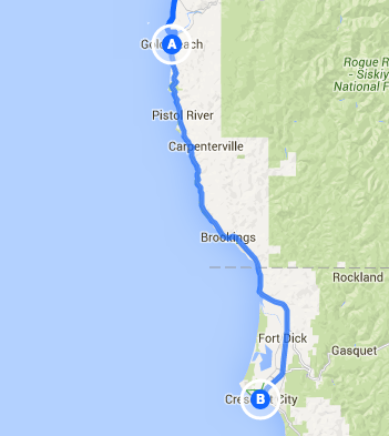 I rode into Crescent City proper, which is an interesting town in an abstract way. It gets more tsunamis than any city on the west Coast; the entire downtown was wiped out in 1964. Given the quality of architecture in the 1960’, what was built in its place is pretty banal. What is interesting is the system of jetties they’ve built to protect the harbor and their advance warning system.