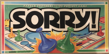 I blame this sorry state of affairs on Parker Brothers, who popularized the British board game in the United States. No one is actually sorry when they send another player’s token back to start. Trilling the word, “Sorry!” only adds salt to the wound of setback, often made worse by the fact that, in a truly vicious game, a player can often select which opponent to abuse. It’s a game of conquest; so elementary to Western nature it hardly needs directions.