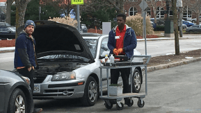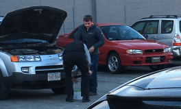 The Auto Zone parking lot is so much more than a place to leave your car while you purchase windshield wipers and motor oil. It’s the place to install your new windshield wipers and replace your motor oil, preferably with other Auto Zone groupies giving advice, perhaps even lending a hand. The guys who work at Auto Zone—they are all guys—spend a lot of time in the parking lot; popping hoods, checking belts, fiddling filters. I have no idea if this hands-on assistance is included in the purchase price of Auto Zone’s wares (a cyclist has no reason to ever go inside) but I am inclined to think the place offers good value: parts plus replacement.