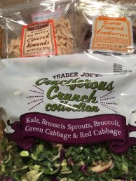 Dinner takes advance planning, since I only use dry beans, which have to be soaked overnight. Beyond that, the process is the same. In winter, cook the beans in lots of liquid with many additives and call it soup. In summer cook the beans thick and refry them in a pan. As a big fan of ‘peasant’ food, the key to success is to cook everything twice. Boil and bake, boil and fry, sometimes even boil and broil. Tough food needs more cooking. If the taste is bland, add unlimited amounts of Tumeric, that cancer-reducing spice that turns any concoction an intriguing orange. If you are intent on being fancy, serve rice on the side with hearty bread. Gussy the meal up with Trader Joe’s Cruciferous Crunch, tossed with half a bag of cranberries and sliced almonds, doused in the dressing of your choice.