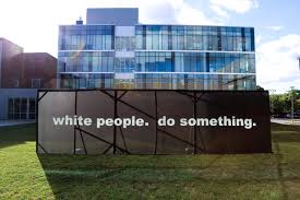 Kara Springer’s A Small Matter of Engineering, Part II is the featured image of Corinne Shatuck’s post. My initial reaction to the image was discomforting. What makes these four words (white people. do something.) on a black canvas, art? And why is it that white people have to do something? Haven’t white people already done enough—good and bad—in this world? Aren’t we in a mode when white people ought to step aside and allow others take their turn steering? This blogger, convinced the world will be better when the humans do less, had to wrassle with the notion of white people doing more. Until, of course, I realized, we are not being challenged to do more. We are being challenged to do different. And since white people developed the systems under which our society operates, either we take the lead in unraveling them, or face the revolutionary anthems our oppression will deservedly inspire.
