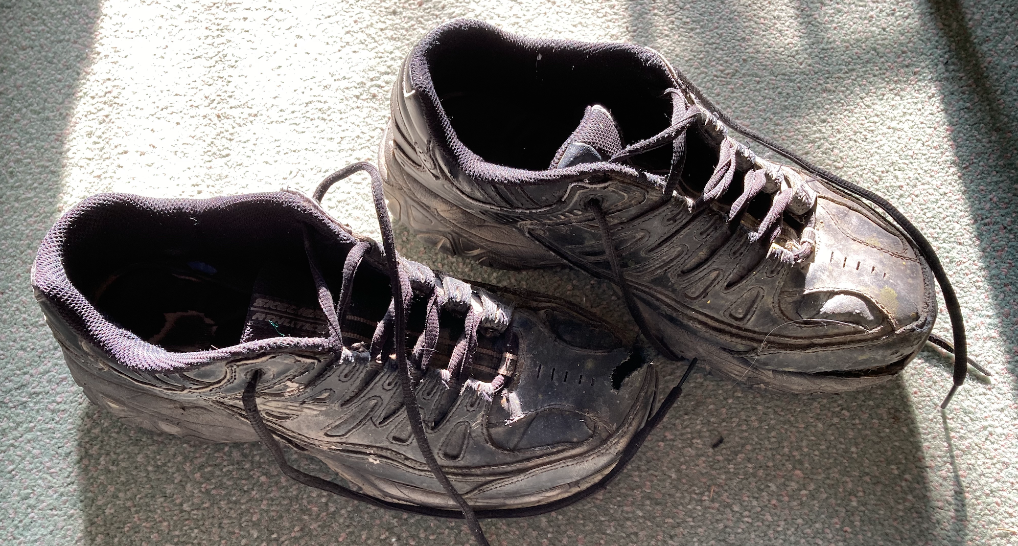 My world shrinks so tiny, I scarcely ride my bike. Everything essential is within walking distance, and goodness knows I have plenty of time to get places. My toe heals. I kept walking. I explore neighborhoods I’ve never visited; it’s nice to discover something fresh. My pedometer logs 10,000 steps or more a day. Every day.