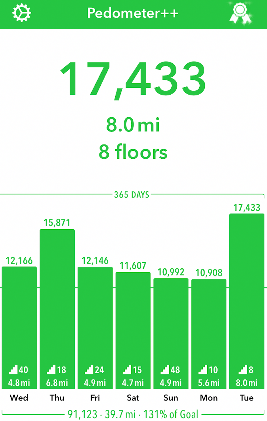 I always enjoy a challenge, especially when wallowing in ennui. I target 10,000 steps a day for a month. Then another. By summer, the objective is clear: 10,000 steps for a year.