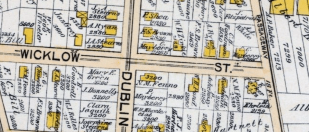 By the time the next Bromley Atlas was published, in 1903, Wicklow Street had become Stearns Street. Eventually, it was designated part of Neighborhood Nine, a sort of shorthand for saying, neither here nor there. Stearns Street’s an equidistant walk from Cambridge’s long-time tony, Tory, Brattle Street; Victorian-fashionable Avon Hill; and the rough-and-tumble worker housing near Alewife’s clay pits.