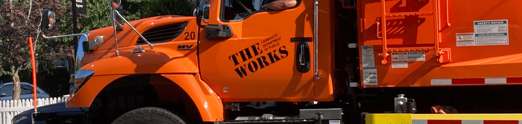 What does sanitation look like with fewer workers rather than premium price? Nearby Watertown deals with its trash more efficiently, though it requires more resident effort. Watertown’s trash and recycling are also contracted to Republic Services, though I doubt NBC-10 will report from there, as I’ve witnessed that Watertown’s system works. The city provides specific containers for trash and recycling. Their website outlines strict instructions for how to place containers along the street. A lone driver navigates the side-loading truck, a lever-arm mechanically lifts each container and empties it into the hopper. A solo driver/collector is less flexible than Cambridge’s three-person crew. But it’s an appealing approach to collecting trash with fewer people, more machinery.