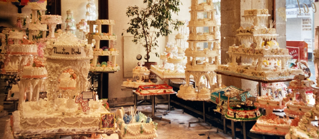 Directly across from the Hotel Monte Carlo is the Ideal Pasteleria, a heavenly bakery. On one side is the cake room, tribute to the confectioner’s art. Full glass to the street and mirrors on the other walls reflecting a space brimming with frosting. Sheet cakes depicting legendary heroes, layer cakes four and five tiers high flowing with garlands. A fantasy land for brides and grooms, proud parents of babies to be christened, or simply people craving these marvelous concoctions. Phil and I were not looking for buttercream calla lilies to fortify us on our bus trip, so we turned to the adjacent room, piled with tables of pastries: dough balls filled with meat or cheese; sugar pastry pressed into shapes; and cream-filled cakes with fruit topping. The place was swarming with workers, Men molding pastry by hand, girls arranging the tables, women tabulating our purchases, others collecting our pesos. Though I tried to be prudent, temptation compelled me to select more than I could eat in a day. Still, when my total was tabulated I could not believe how much could be purchased for so little. It was my first experience with an economy quite different from our own. One rooted in abundance of labor and dearth of technology.