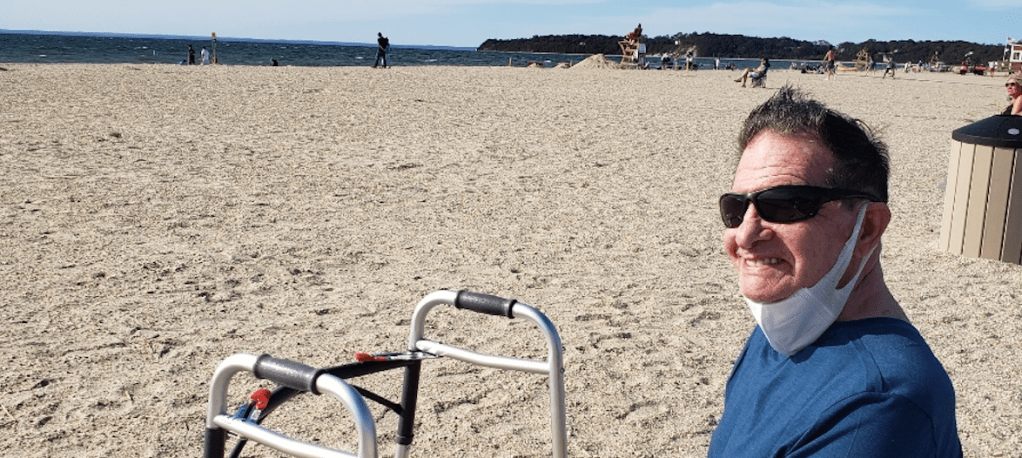Bob was insistent on living independently, though I shamed him into getting an emergency call button. Still, his balance got worse; he fell too often. His memory became too patchy. In March 2020, Bob had a major setback. I visited him in Spaulding Rehab several times, where he’d charmed a bevy of nurses into special treatment. The guy exuded glamour still. The day Bob was set for release was the first day of COVID lockdown. He went to a nursing facility where no one could visit. I’d cycle over and chat with him thorough the exterior window, but he was so confused, I doubt he knew me. Eventually, Lorraine got permission to transfer him to Long Island. After she picked him up, she drove to his condo, where about fifty local friends greeted Bob in the parking lot, all of us masked and distanced. Like so many events during COVID, it was a well-intentioned gesture, yet a pitifully insufficient goodbye to such a glorious man. Bob died on March 2, 2021. Age 69.