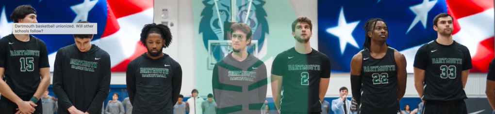 A couple of months ago The Boston Globe ran an article about the Dartmouth College basketball team, which voted to form a union. I imagined the writer trying mightily not to pen the story as satire. Which got me wondering, what is the proper perspective from which to write about a bunch of privileged guys (they go to Dartmouth, after all) wanting to get paid for playing a sport they choose to play, but they’re not all that good at (they go to Dartmouth after all)? This is not a case of a basketball powerhouse taking advantage of hardscrabble yet incredibly tall kids for whom basketball is the key to their future. The NCAA needs to address abuses in that arena. These are guys attending an elite college that does not offer athletic scholarships, but does practice need-blind admission. Back in the day, I benefited from that policy and worked in the college library as part of my work study. It never occurred to me that I should be paid for my ballroom dance prowess, though I’m a damn good dancer.