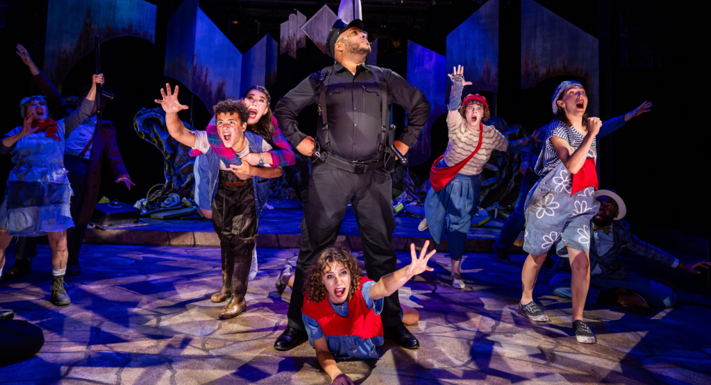 Urinetown premiered on Broadway in 2001, garnered ten Tony nominations, and won three. Like all great musicals, major themes underpin the lightheartedness. More than twenty years later, the show’s prescient exposure of our climate crisis, it’s satire on capitalism, populism, corruption, and bureaucracy percolates beneath the surface silliness. Nevertheless, the human capacity to rise in stirring song transcends evil, without ever dampening the hysterical antics of townspeople writhing to relieve themselves.