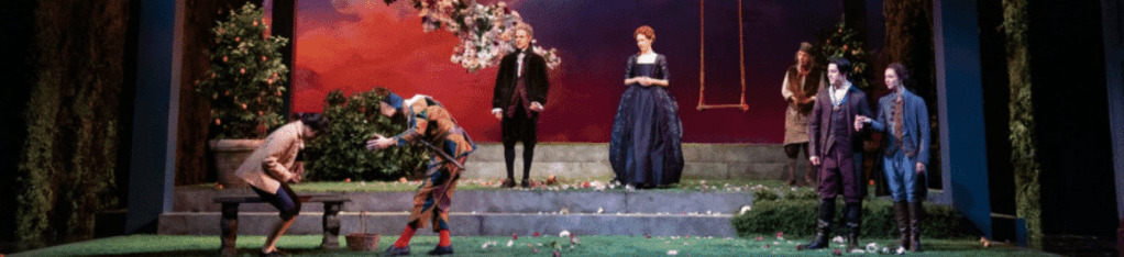 The Triumph of Love is an Eighteenth-Century play by Pierre Carlet de Chamberlain de Marivaux that premiered at the Comédie Italienne in 1732. If you’re like me, your working knowledge of French theater begins and ends with Molière and the Comédie Francaise. Marivaux came later, and he favored the rival Italienne troupe, which premiered most of his thirty+ plays. Marivaux’s satire is less biting than Moliere’s, but his social insights are keen and his humor is, well, meveilleux! Especially in Stephen Wadsworth’s wonderful adaptation.