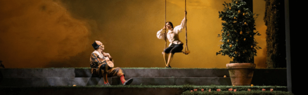 If you’ve got whiplash from life in these United States these days, maybe it’s time to dial back a few hundred years and let your head clear on an elegant swing in a beautiful country garden. Forget the trivial differences loitering among us these days, and tackle the existential issues of rationality versus romance. Give in to pure indulgence and give yourself over to The Triumph of Love.