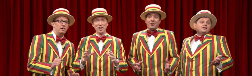 The term for people singing without instruments is, a cappella, which comes from the Italian for “in the style of the chapel.” In the 19th-century United States, we developed a secular form of a cappella known as barbershop quartet. Barbershop is characterized by four-part close harmony, traditionally performed by men. Barbershop has roots in the African-American community, but like other American art forms, was adapted, transformed, and ultimately popularized among white Americans. In fact, barbershop evolved to epitomize a kind of wholesome, hometown Americana of family men wearing matching seersucker jackets and straw hats, singing in the gazebo on the town green on the Fourth of July. Barbershop songs are short in length, cute in lyric, light on emotion (except for pure love), and rich in harmonics. As such, it well represents the dominant culture of its time.